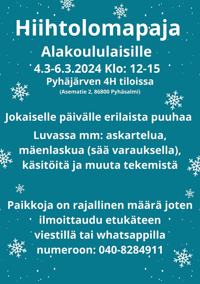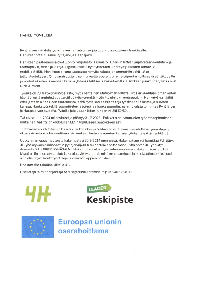 Pyhäjärvellä on alkanut uusi hanke! Lisätietoja hankkeesta saat Pyhäjärven 4H-yhdistykseltä Ota rohkeasti yhteyttä niin yritetään yhdessä löytää juuri sinulle sopivat ratkaisut |