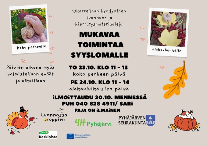 Kustannukset sekä toiminta menevät puoliksi Pyhäjärven ja Haapajärven välillä.Hanketyöntekijäksi Luonnossa oppien - hankkeelle valittiin Jemina Haataja, Pyhäjärveltä